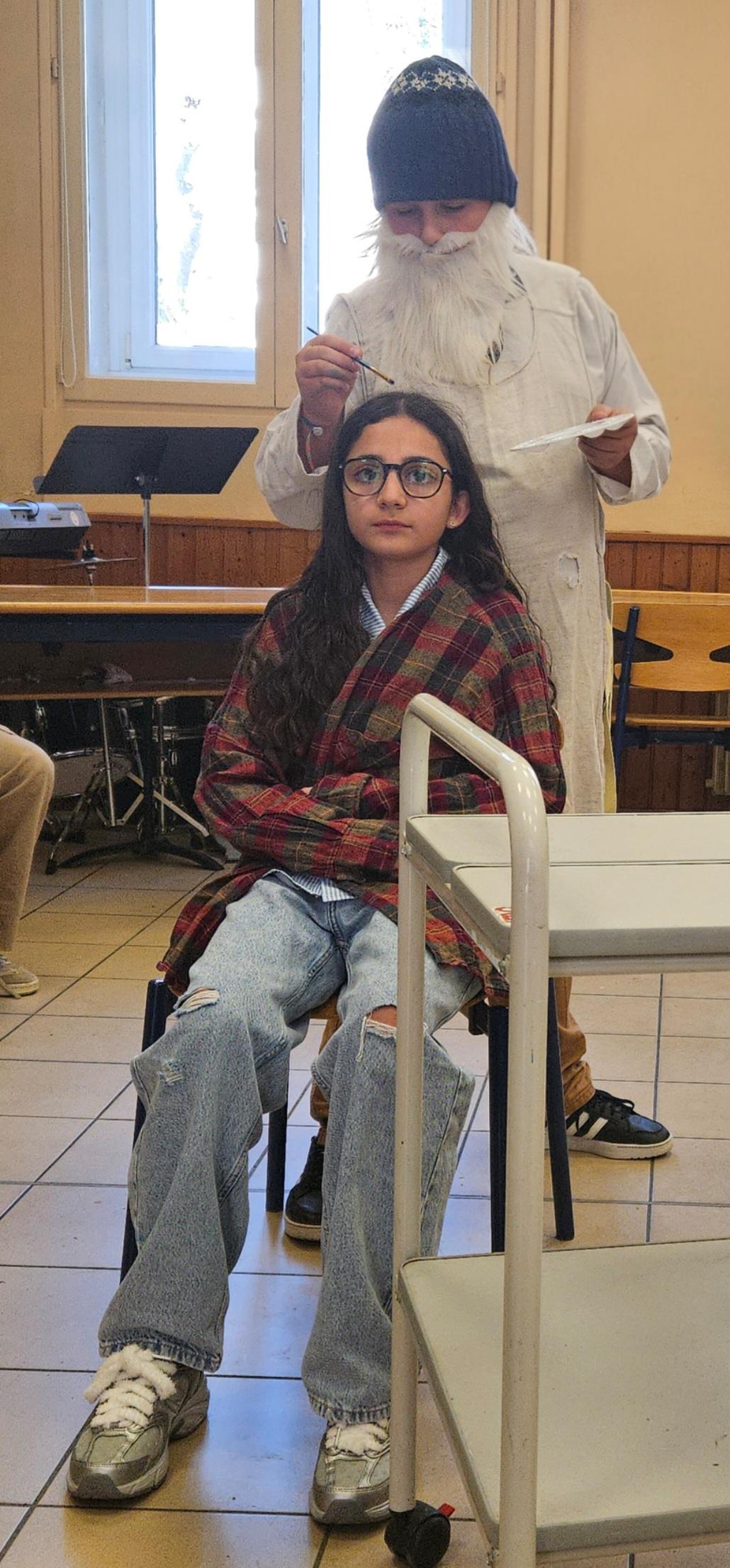 Ensuite, les élèves ont été répartis en groupes pour choisir et adapter différentes scènes. Ils ont travaillé sur la mise en voix, la gestuelle, les déplacements et l’expression des sentiments. Certains se sont également impliqués dans la création d’accessoires ou dans la réflexion sur la mise en scène, afin de rendre leur interprétation plus vivante et fidèle à l’esprit de la pièce.